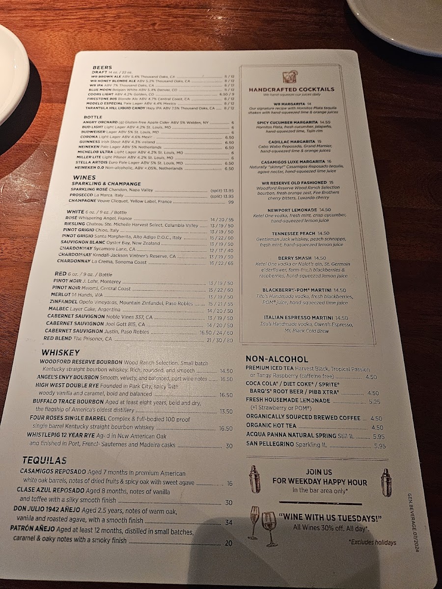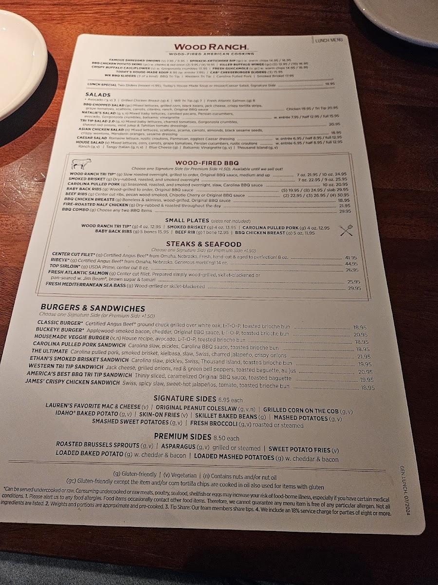 Excellent experience. Staff was very warm , friendly, and provided fantastic service with a smile. From entering the building to paying the bill. Best service I have received in very long time. Had the lunch special. 2 brisket sliders, Mac n cheese, and salad. Food was outstanding. Lunch special has options ,so it's not limited to what I ordered. Thank you Wood Ranch in Stevenson Ranch!